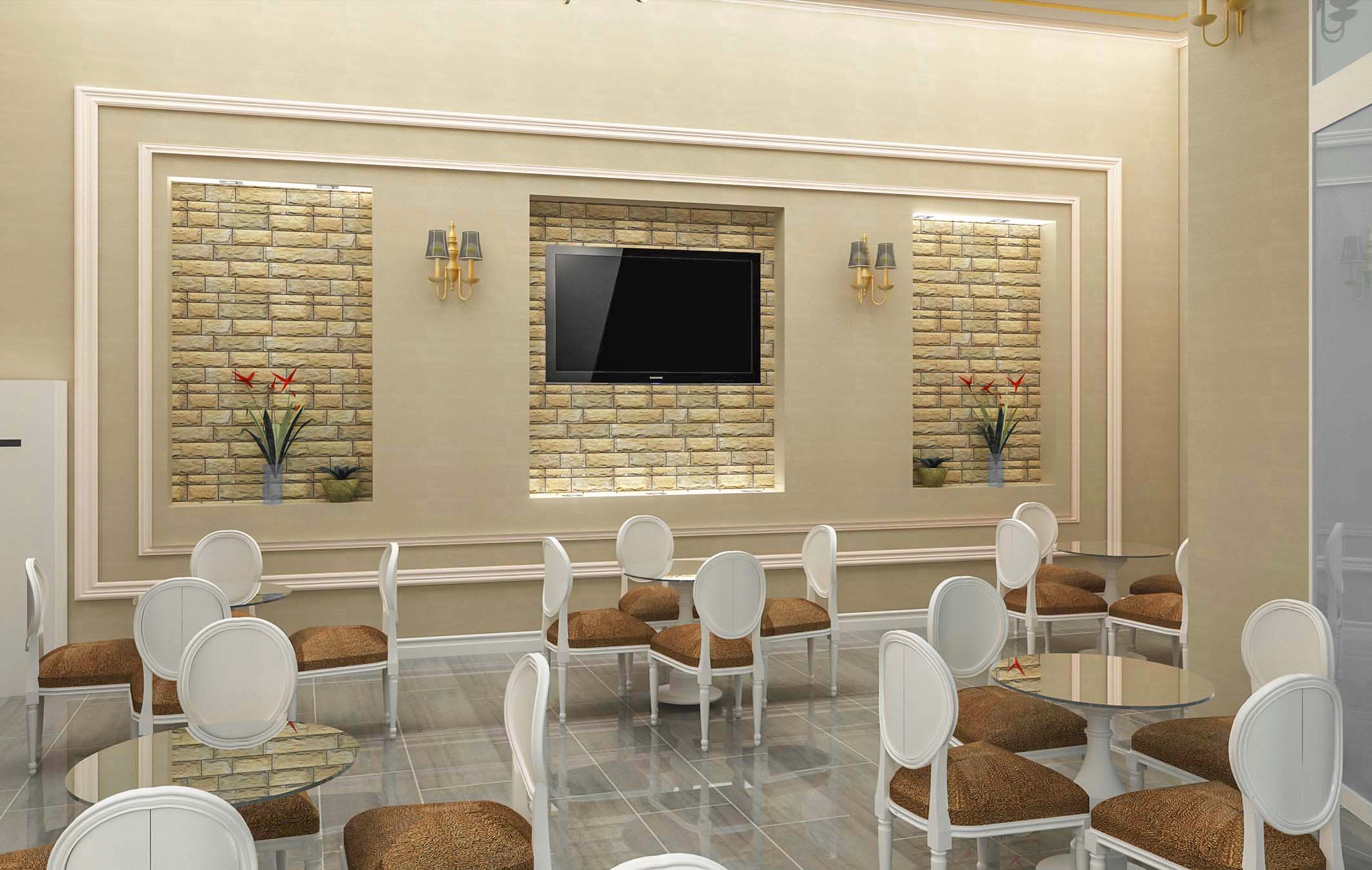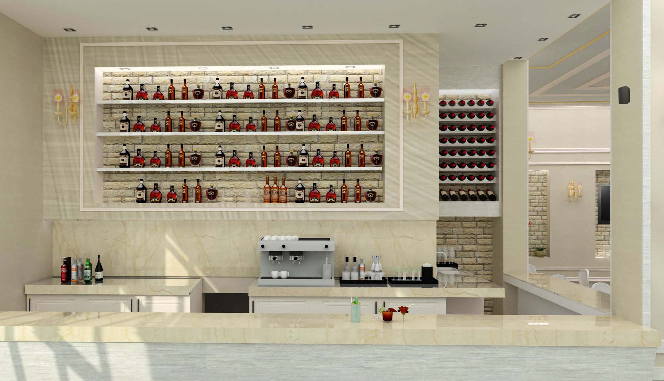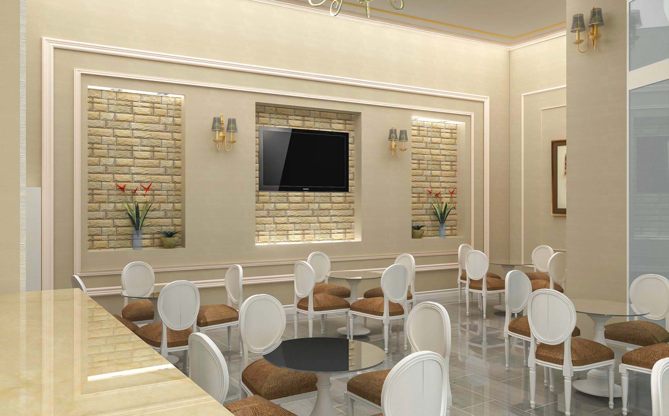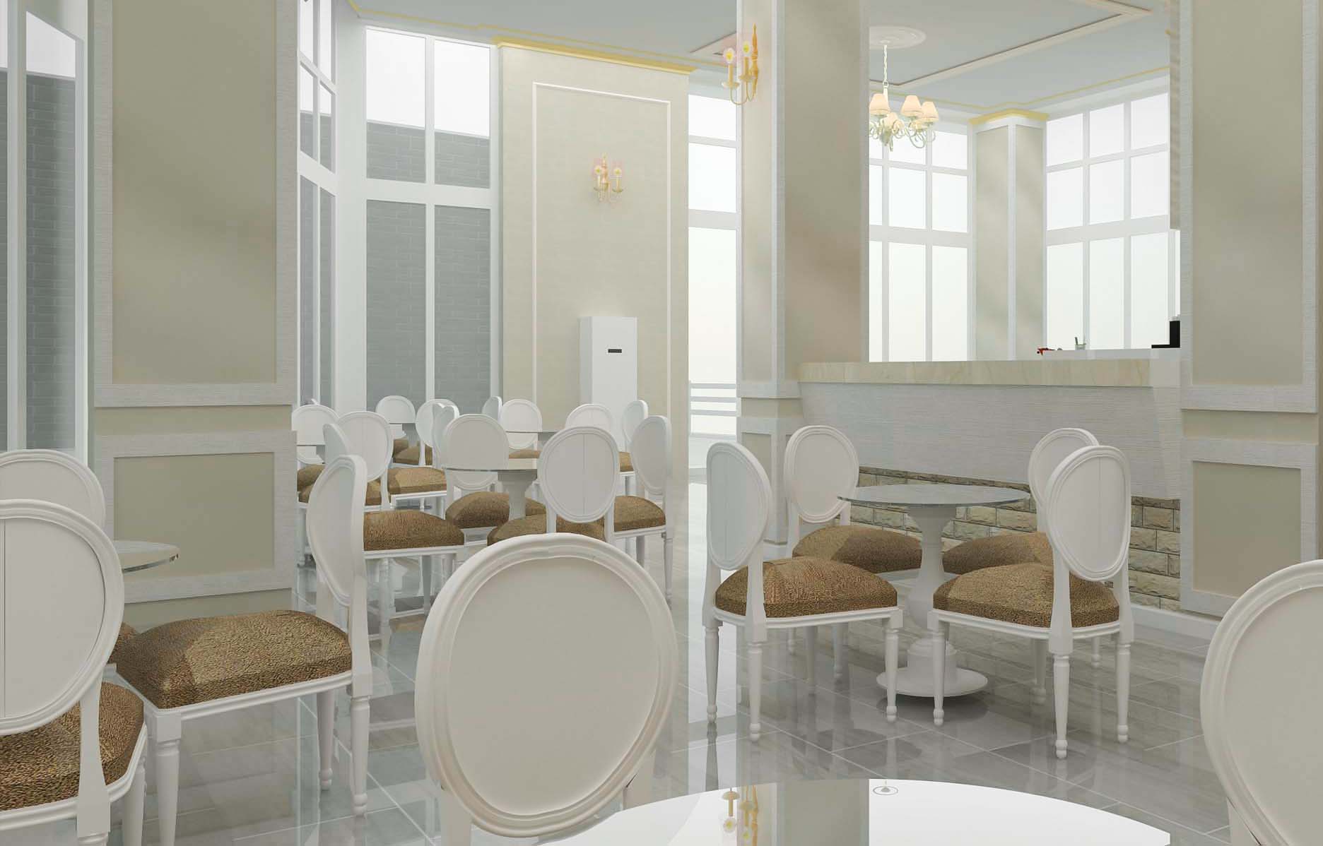 Ambjenti ka një sipërfaqe prej 150 m² dhe ndodhet në rrugën e ambasadave në Tiranë. Ai organizohet në 2 ambjente; Ambjenti i verandës jashtë i cili lidhet me ambientet e brendshme me anë të një vetrate xhami me mekanizma palosje.Në ambientet brenda lokalit ku është edhe banaku, është trajtuar një stil i kombinuar mes klasikes dhe neoklasikes. Duke u pershtatur edhe me kërkesat e klientit është kombinuar çdo gjë me detaj dhe duke nxjerë në dritë edhe pjesët më të errëta të lokalit, si nga ana e ndriçimit ashtu edhe nga ana e konfortit vizual.