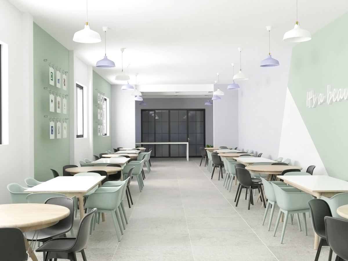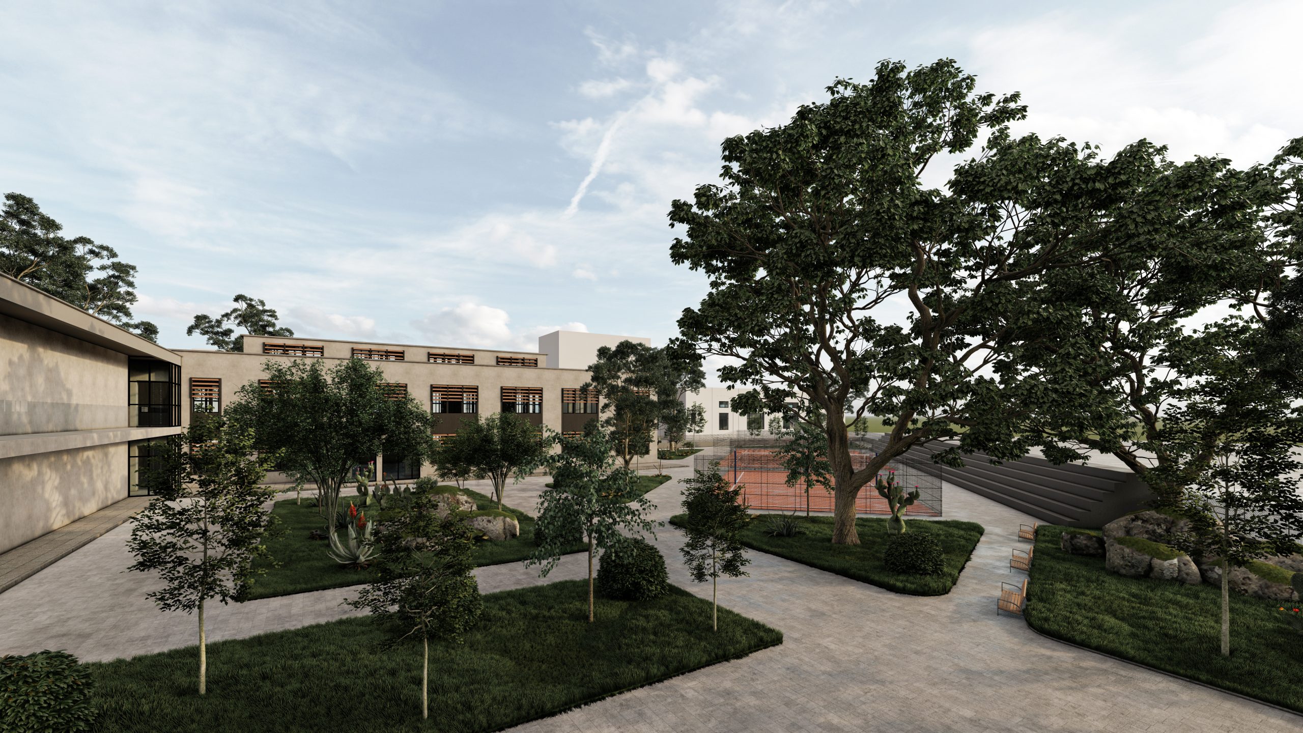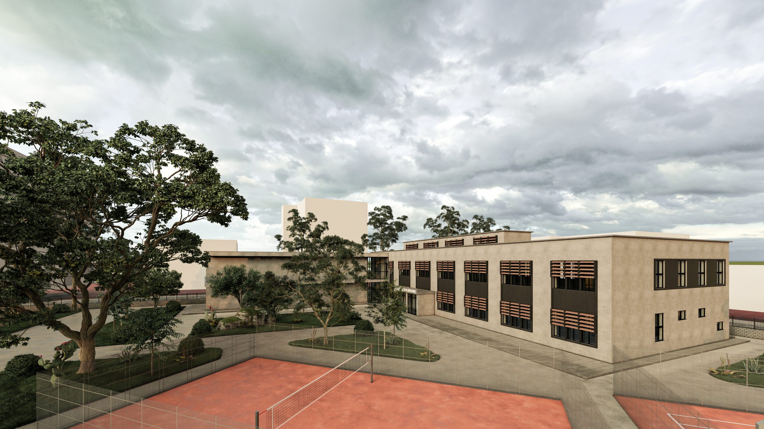 Objekti eshte dy katesh dhe eshte i ndertuar me strukture me kolona beton arme dhe mure mbajtese ne perimeter. Objekti ne momentin e marrjes ne dorezim nga shkolla gjermane, ka qene hapesire me funksion fasonerie, pa mure ndares, vetem me kolona. Nderhyrjet e bera ne planimetrine e te dy kateve, kane qene ndarjet mureve te klasave me karton gips dhe mbulimi i trareve me tavan te varur me fibra minerale.