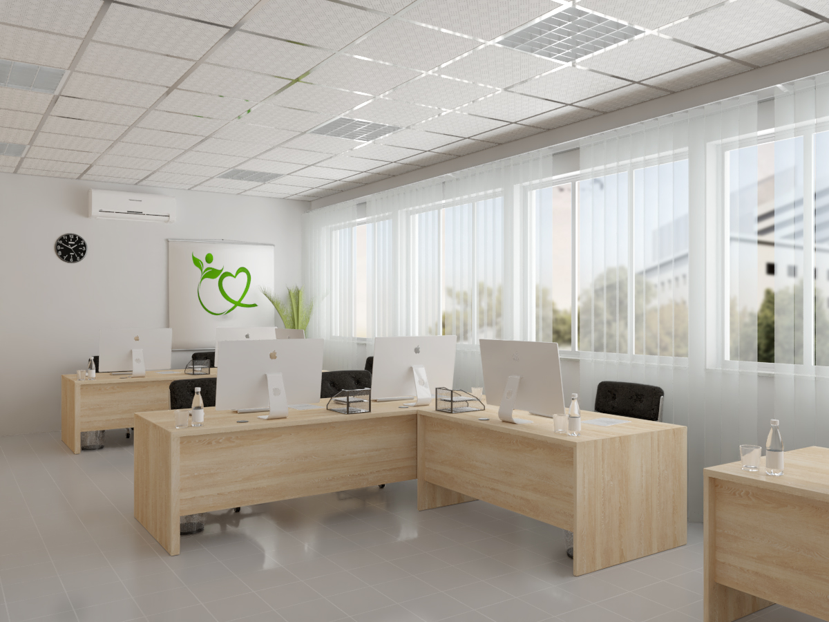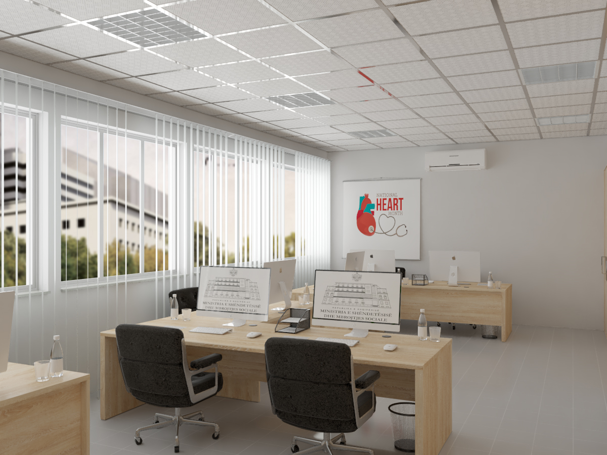 Keto zyra shtrihen ne nje godine me 5 kate kanë një sipërfaqe prej 2700m2. Ndodhen në Tiranë, në një zonë me zhvillim të ri urban. Zyrat janë organizuar ne hapesira me funksione të ndryshme si: holli I pritjes, recepsioni kënd rekreacioni, salla e mbledhjeve, financa, media, kuzhina dhe ambjente ndihmëse. Ambjenti është mjaft funksional, me hapsira racionale dhe njëkohësisht të bollshme. Zyrat kanë një stil “modern”, karakterizohet nga ngjyra të errëta dhe neutrale. Format e perdoruara në mobilim janë të thjeshta dhe të nje stili minimal, duke shfrytëzuar në maksimum hapsirën.