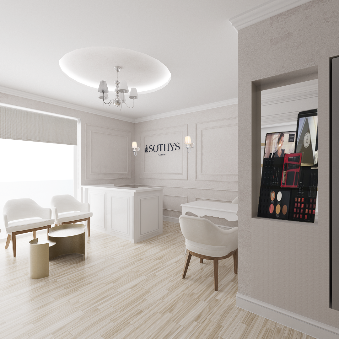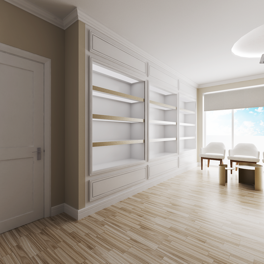 Ky sallon ka një sipërfaqe prej 94 m2 dhe ndodhet Tiranë, në një zonë me zhvillim të ri urban. Salloni është organizuar në menyre te tille qe te plotesoje te gjitha funksionet e nevojshme ne ate ambjent. Salloni është mjaft funksional, me hapsira racionale dhe njëkohësisht të bollshme. Salloni ka një stil modern karakterizohet nga ngjyra të ngrohta, materiali I drurit mbizoteron . Format e perdoruara në mobilim janë të thjeshta dhe të nje stili modern, duke shfrytëzuar në maksimum hapsirën.