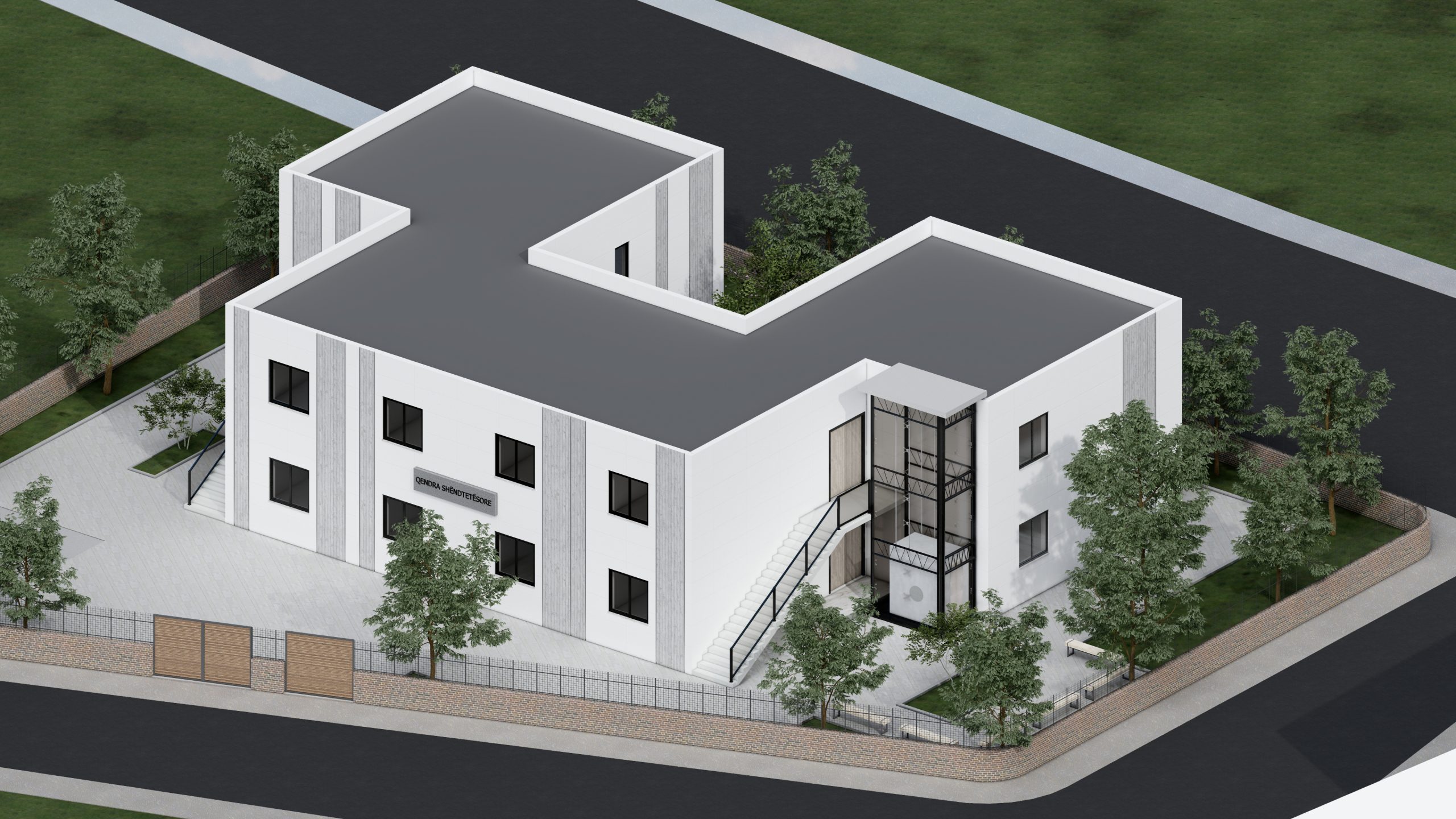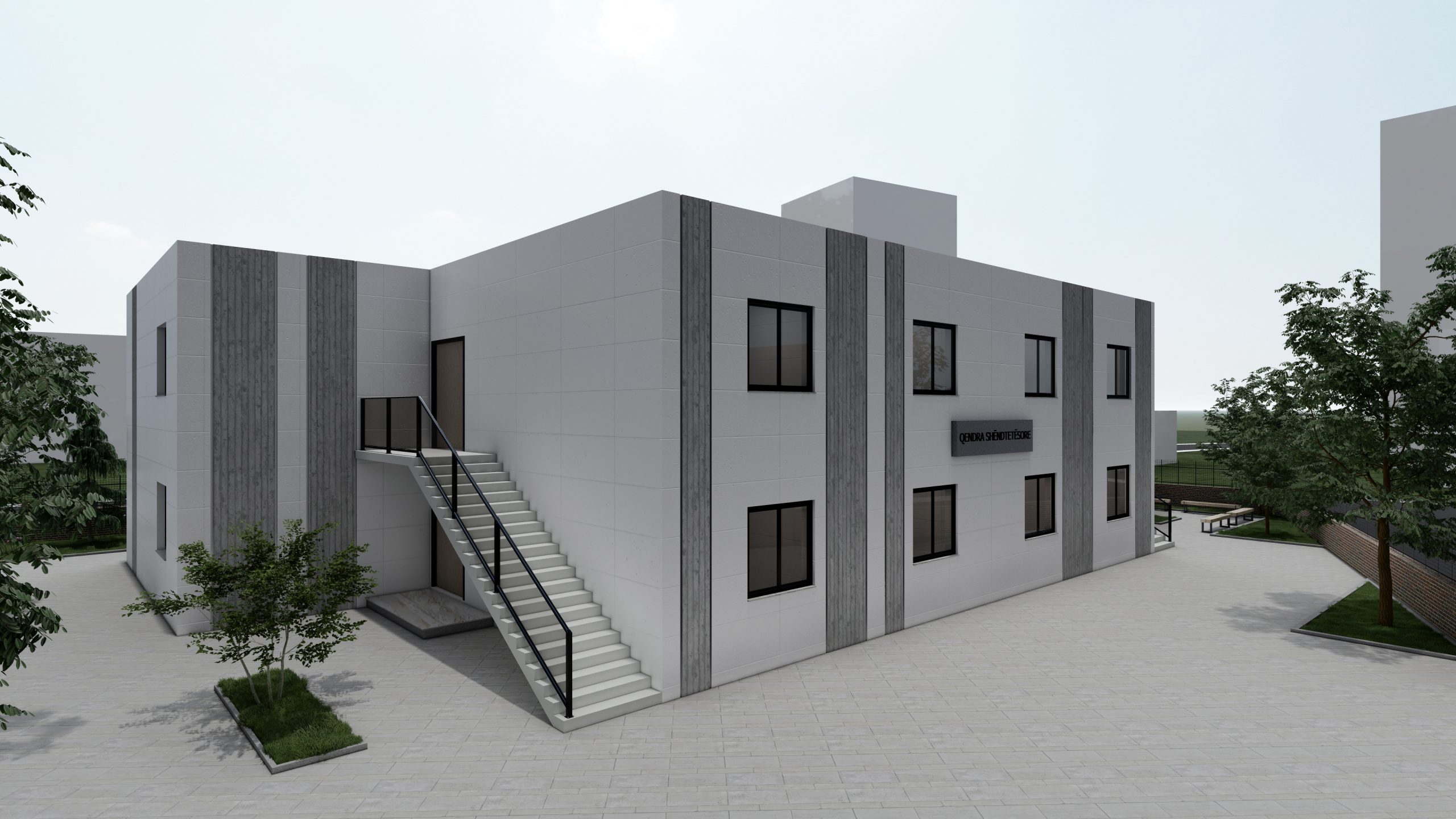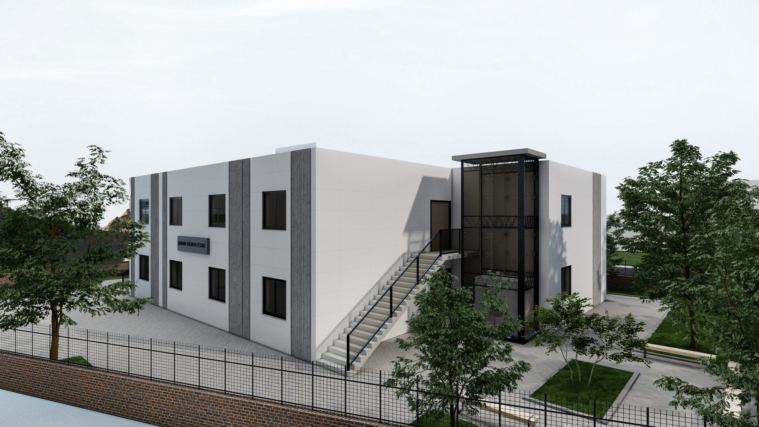 Fasada është e mbuluar me stuko betoni dhe suva grafiato. Dritaret janë duralumin me xham të dyfishtë në mënyrë që të mos ketë humbje energjie.