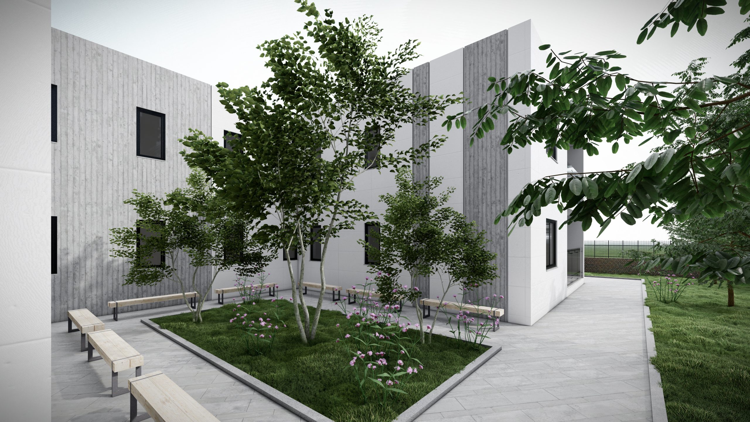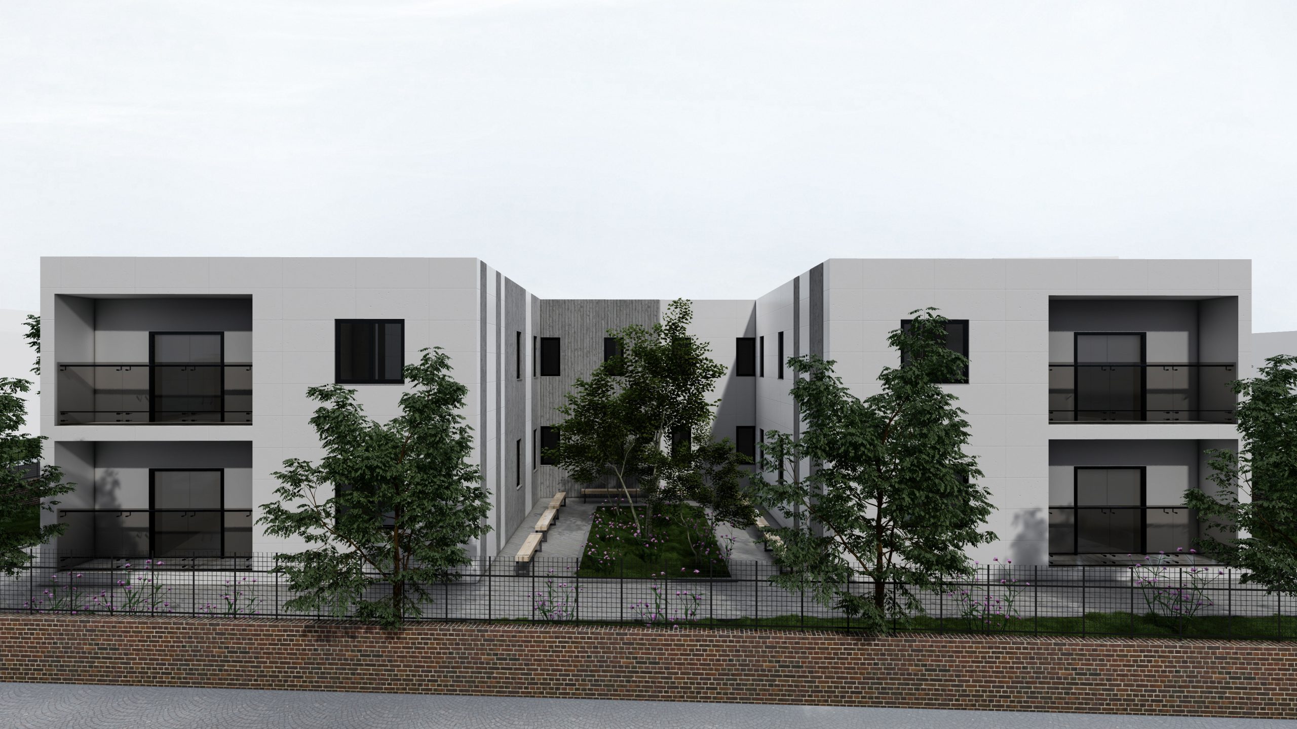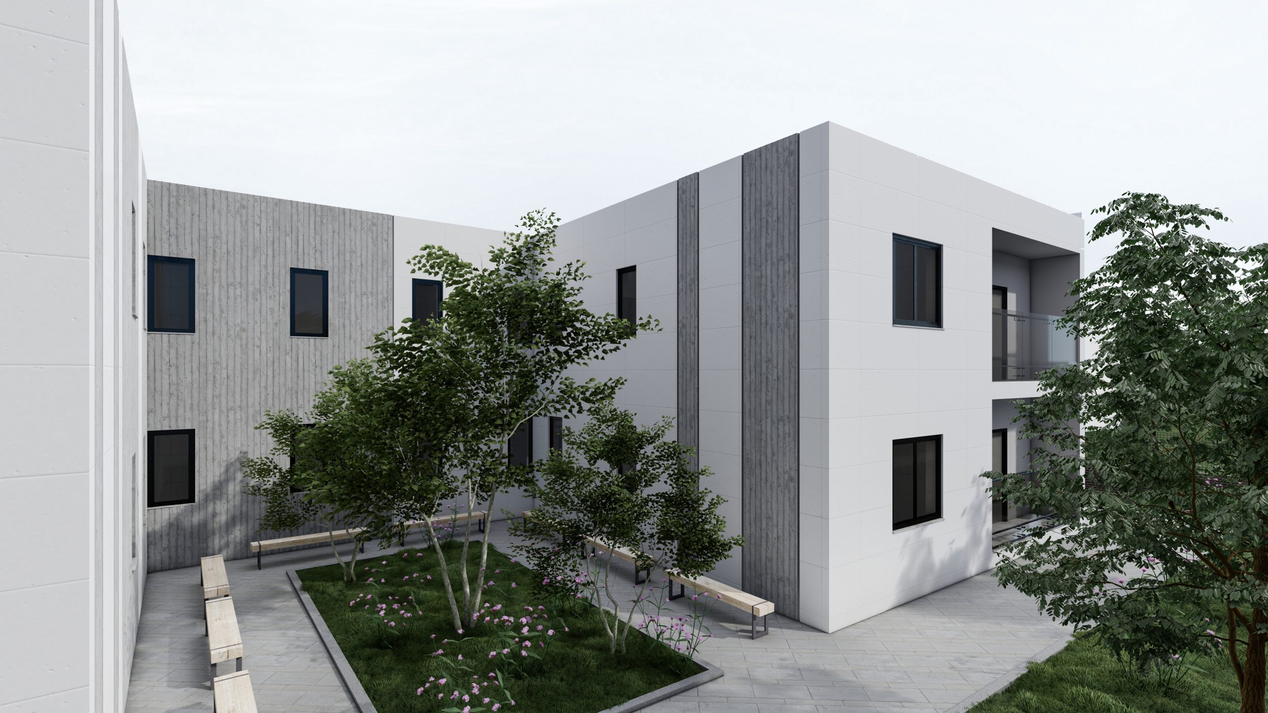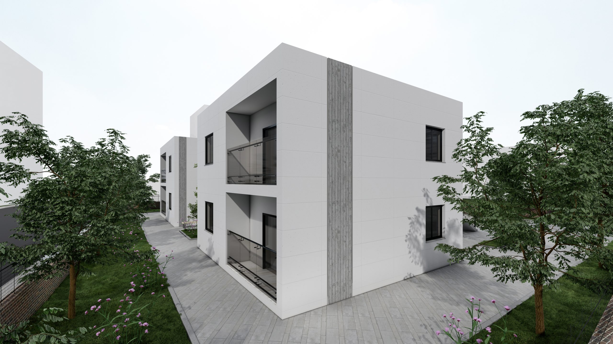 Fasada është e mbuluar me stuko betoni dhe suva grafiato. Dritaret janë duralumin me xham të dyfishtë në mënyrë që të mos ketë humbje energjie.